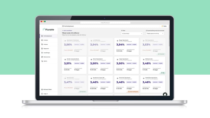 Nå kan regnskapsførere bruke Fixrate sin partnerportal for å hjelpe kundene sine til å få bedre rentebetingelser. Vi har sett eksempler på kunder som tjener inn hele regnskapsførerhonoraret sitt!